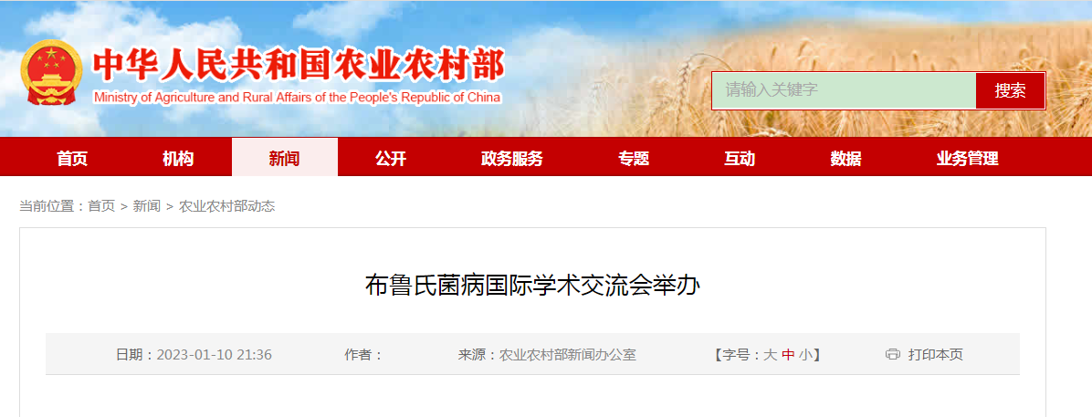 本網(wǎng)訊 1月10日,布魯氏菌病國際學術(shù)交流會以線上線下相結(jié)合形式舉辦,農(nóng)業(yè)農(nóng)村部副部長馬有祥出席開幕式并致辭。