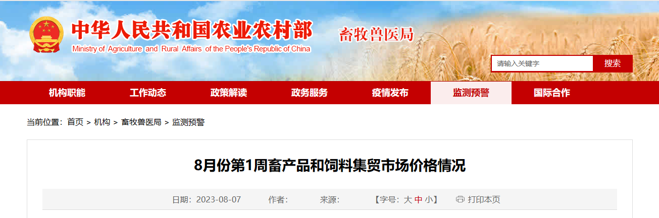 據(jù)對全國500個縣集貿(mào)市場和采集點的監(jiān)測,8月份第1周(采集日為8月2日)生豬產(chǎn)品、家禽產(chǎn)品、牛羊肉、飼料價格上漲,生鮮乳價格持平。 生豬產(chǎn)品價格。全國仔豬平均價格32.16元/公斤,比...