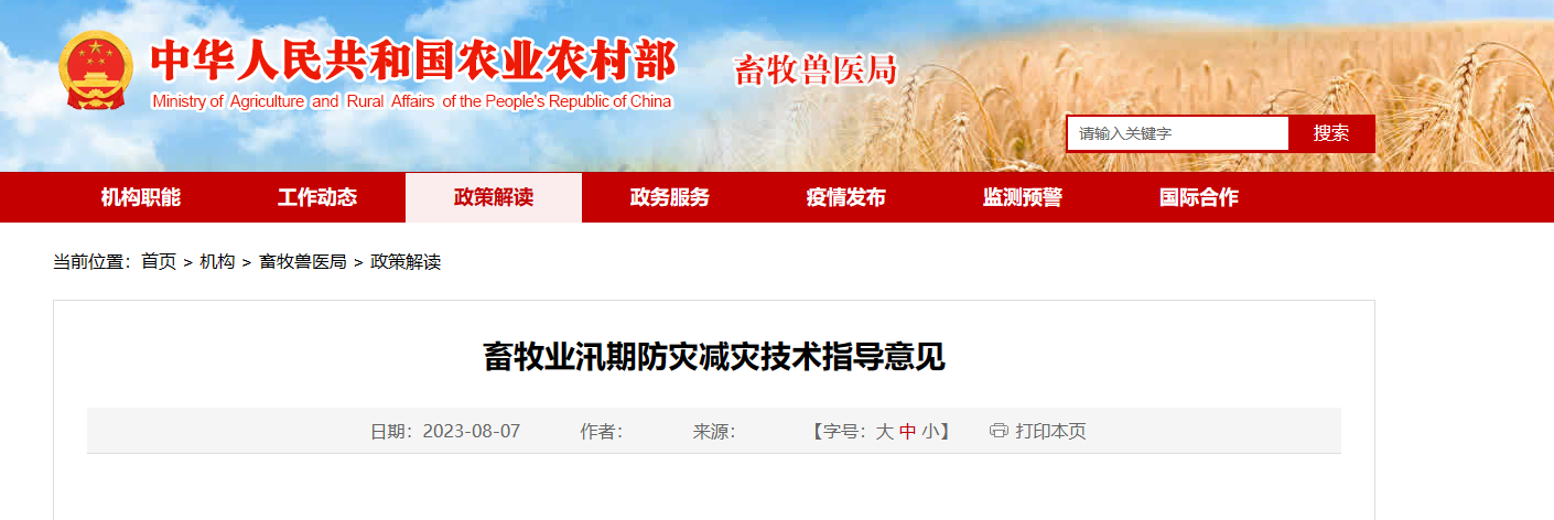 為進(jìn)一步指導(dǎo)各地應(yīng)對強降雨、臺風(fēng)、洪澇等災(zāi)害影響,最大程度降低災(zāi)害損失,穩(wěn)定畜牧業(yè)生產(chǎn),在前期發(fā)布《雨季養(yǎng)殖場戶非洲豬瘟防控技術(shù)要點》《汛期動物疫病防控技術(shù)指導(dǎo)意見》的基礎(chǔ)上,農(nóng)業(yè)農(nóng)村部近日又發(fā)布《畜...