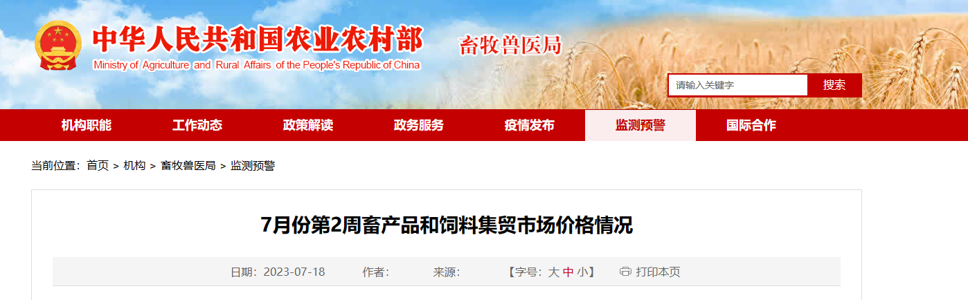 據(jù)對全國500個縣集貿(mào)市場和采集點的監(jiān)測,7月份第2周(采集日為7月12日)生豬產(chǎn)品、雞蛋、雞肉、商品代蛋雛雞、牛羊產(chǎn)品價格下跌,商品代肉雛雞、玉米、豆粕、育肥豬配合飼料、蛋雞配合飼料價格...