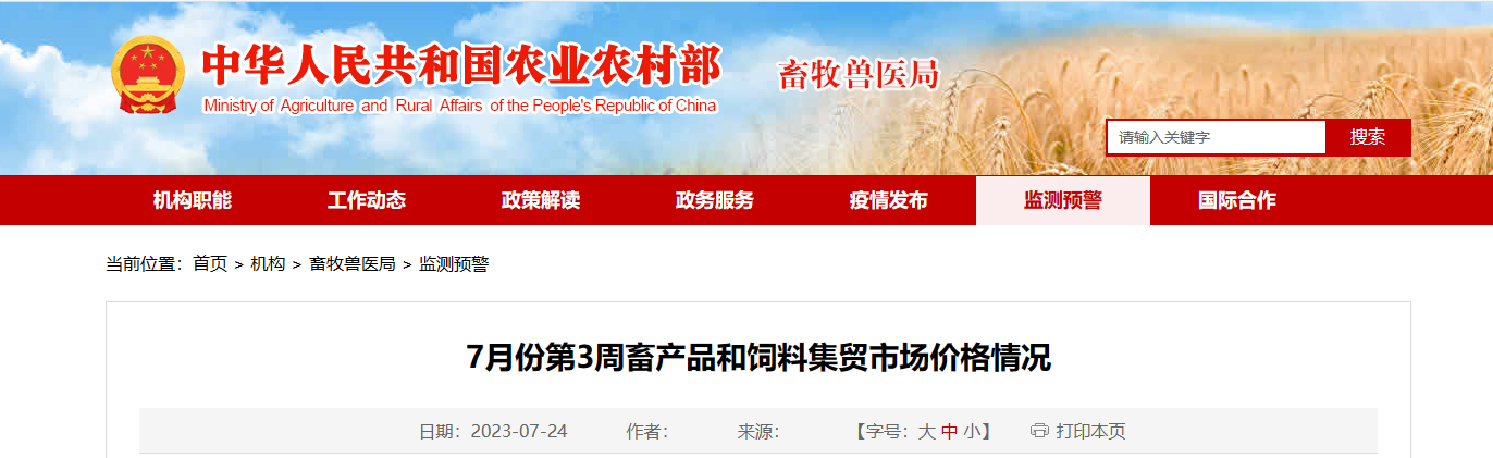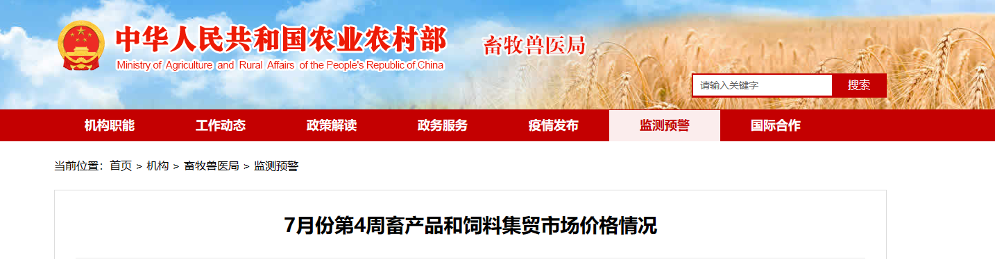 7月份第4周畜產(chǎn)品和飼料集貿(mào)市場價格情況...