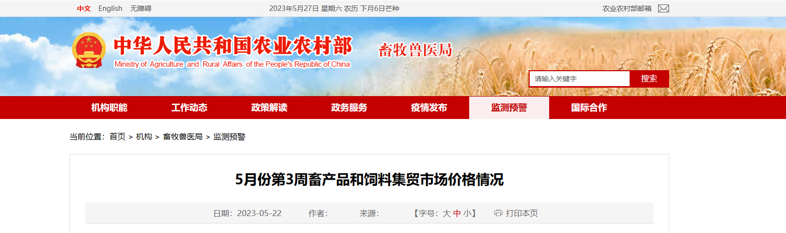 農(nóng)業(yè)農(nóng)村部等五部門聯(lián)合發(fā)布2023年4月份生豬產(chǎn)品數(shù)據(jù)...